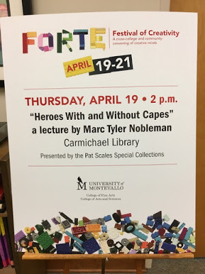 I have been at the University of Montevallo for just over a year now. Prior to that, I was a librarian at the University of Pittsburgh at Greensburg in Pennsylvania where I had the pleasure of coordinating their annual children's literature conference, which is where I met Marc. About a year before the conference, I received the first of what would be many emails with subject lines like, "Batman at Pitt Greensburg in 2015?" or "Batman, you know. Superman, you know. Nobleman, you will know." And I would think to myself, "Who is this guy who will not stop emailing me?!" I booked him as one of our keynote speakers for May 2015, a decision that I've never regretted!