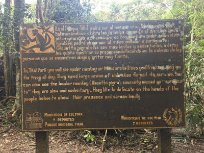 Once you pass the entrance to Tikal National Park, it's still at 17-kilometer drive through jungle to get to the actual entrance to the ruins. You pass signs warning of various animals, including snakes. I wanted a photo of the snake sign but we were driving too fast. And it ended up being the only snake we saw all day.