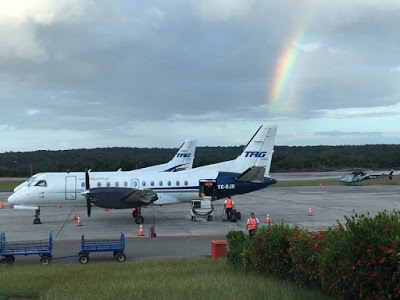 Which, surprise, it didn't. My flight number was 110 but turns out three flights were scheduled to leave GC for Flores (the airport closest to Tikal) at 6:30, out of the same gate but with different (unannounced) flight numbers. Based on factors not clear or explained to us, the airline staff divided up the passengers, and of course my plane was not only last to leave but, for reasons not clear or explained, at least 20 minutes late to leave.