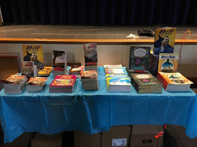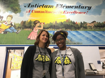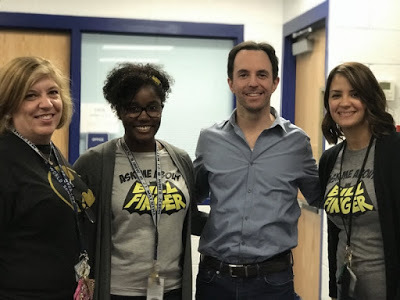 On 11/30/17, I had the pleasure of speaking at Antietam Elementary in Woodbridge, VA. My two hosts, Ashli Edwards and Anamarie Wyatt, surprised me by greeting me in the lesser-known but equally cool second type of Bill Finger T-shirt. (Yes, there are two.)