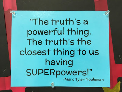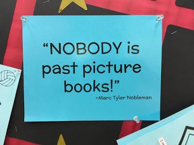 Librarian Gayle Johnston of Glacier Ridge Elementary in Crystal Lake first heard me speak at Northern Illinois University in 2016. She took thorough notes—and repurposed some of my sound bites on signs in the hallway and library.