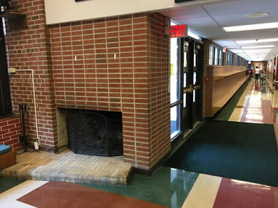 Greenwood Elementary in Woodstock boasts something I have not seen in my 13 years of author visits: a fireplace. The school was built in 1949 and the fireplace has since been converted to gas...but it's still in use (Christmas storytimes).