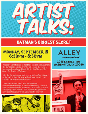 On 9/18/17, two years to the day of the Bill Finger credit announcement, I spoke twice about the man: during the day at a school in Reston, VA and at night at Alley, a New York-founded company that recently opened a DC office.