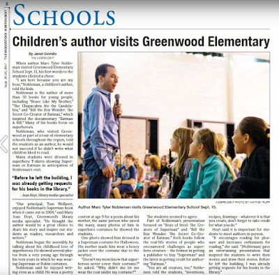 Thank you again for having me at your school. I had a lovely time; the kids were enthusiastic and engaged. In case you missed this, here is how the local paper covered my visit. [hyperlinked]