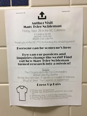 A daughter of friend/fellow author Kwame Alexander attends the Reston school; Kwame kindly sat in on one of my talks and joined me and librarian Kim Sigle for lunch.