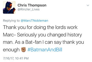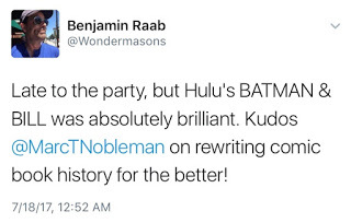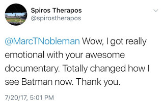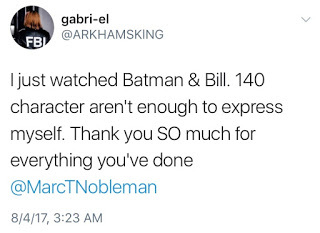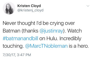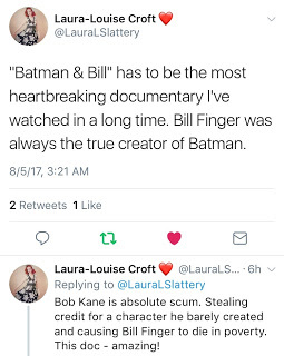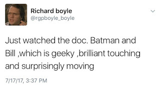 Fantastic as it was to hear Fred's voice, and as articulate as he was, nothing he said led to a change in what I'd already written. However, a clip of me first showing this clip to Fred's daughter Athena made it into Batman & Bill. Though the already short clip is seen/heard only in passing in the doc, it's one of my favorite scenes.
