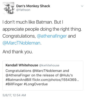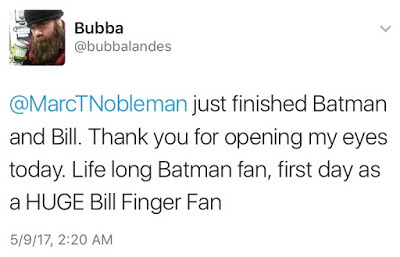 I don't want to give away too much, but I'll say this. I was happy with Batman and Bill. Nobleman really is an unspoken hero who is spreading the gospel of Bill Finger around the world.