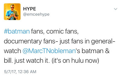 "...in his own way, Marc Nobleman was the hero that Bill Finger needed. So support Bill Finger, support Batman. Watch. This. Documentary."