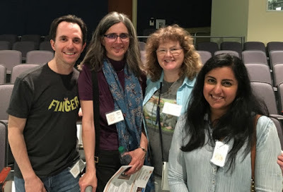 It turns out four of the authors fondly share an editor, Nancy Paulsen at Penguin Random House. Here I am with Ellen Airgood, Lynda Mullaly Hunt, and Aisha Saeed.