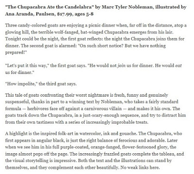 Review of The Chupacabra Ate the Candelabra from the Chicago Tribune (3/7/17):