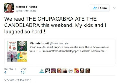 Courtesy of goes-above-and-beyond librarian Liza Halley, I was honored to receive a stack of heartening notes from the students of Thompson Elementary School in Arlington, MA, where I spoke on 3/2/17 (and first signed my latest book, The Chupacabra Ate the Candelabra).