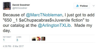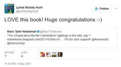 The Chupacabra Ate the Candelabra released on 3/7/17 with the goal of making people laugh, and I'm happy to report that several have. Here is proof: