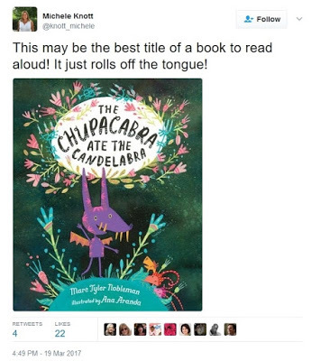 "Oh boy, is this going to be a hoot and a half to read aloud! While children are giggling during story time, they'll be soaking up wonderful new words like 'candelabra,' 'cucaracha,' and 'chupacabra.' This is a delicious read-aloud that will keep kids on the edge of their seats, but in a most benign and silly way."