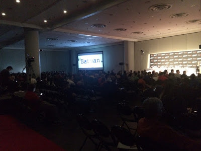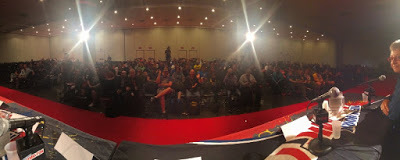 The room held 800—and while one side section wasn't full, it was a great turnout. The panel ended too quickly.