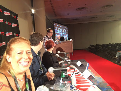 Just over a year after that historic credit announcement, on 10/6/16, opening day of New York Comic Con, "the largest pop culture event on the East Coast," Hulu gave attendees and press a sneak peek of Batman & Bill followed by a panel with Don, Sheena, Bill's granddaughter Athena Finger, his great-grandson Benjamin, Finger legal counsel Alethia Bess Mariotta, Batman movie producer Michael Uslan, and myself, skillfully moderated by Rich Sands, executive editor of TV Guide.