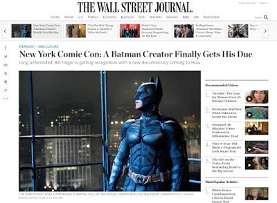 On 9/18/15, mere hours after DC Comics announced that the company would officially add Bill Finger's name to the Batman credit line, I updated Don Argott and Sheena Joyce, the filmmakers with whom I'd started a Bill Finger documentary four years earlier.