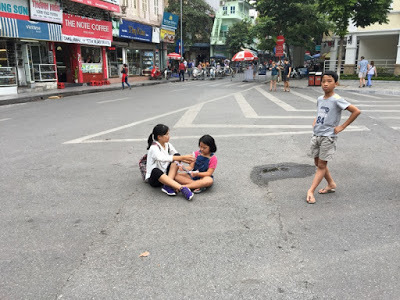 Hoàn Kiếm Lake is a lovely spot surrounded by roads that recently went pedestrians-only, thus allowing one to spot children sitting in the middle of an intersection.