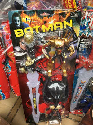 Batman sighting #1: toy packaging sporting a mashup of Batman movie characters (Robin from Batman Forever and Joker from The Dark Knight).