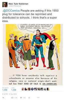 On 11/11/16, on Facebook, I shared a poster from the Golden Age of Comics that I'd seen before and had recently been reminded of. It was (quite obviously, and sadly) a response to the presidential election three days earlier.