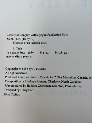 To try to track down Saint, I got a copy of a first edition of the book from the library to comb the acknowledgments, if any. Between the copyright page and flap copy, it yielded only two names: Harry Ford, the designer (who died in 2000) and James Steinberg, the jacket designer.