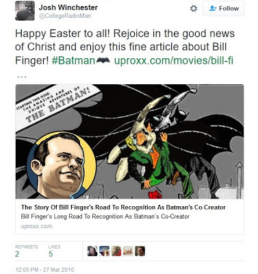 "Your hair looks like Bill Finger's.""Do you know my grandpa?" (when I said I'm from Connecticut, as is his grandpa)"What can we do to help?" (in response to my challenge to help spread Bill's story)
