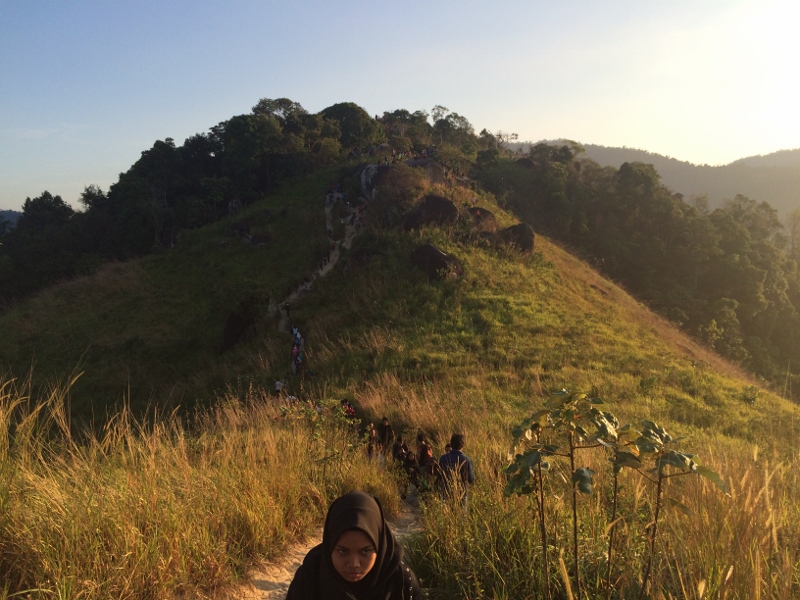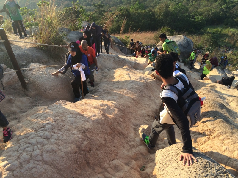 There were two dominant characteristics of the climbers: young and Asian. I was one of the oldest people I saw—and one of only three Caucasians. Most women wore a hijab (Islamic headdress that seems the most modest of styles).