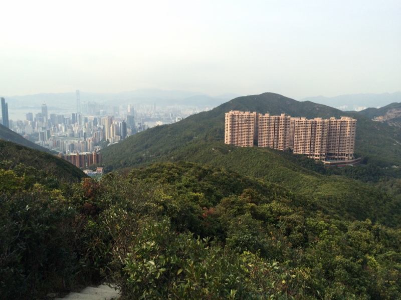 The following day, I took on the Twin Peaks; at 3,000 steps (though they say 1,000), it's a workout with a view. And it's actually three peaks; the first is called Violet Hill. You start right behind here, a complex that looks cool but doesn't seem in close proximity to rolling hills: