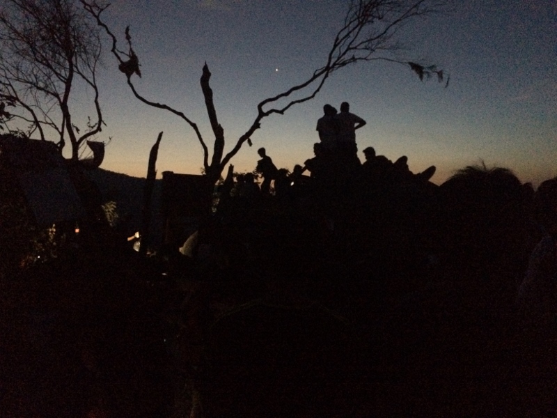 Why so early if it is not that far? Because first you have to hike up to the top. Why so long if it’s not that high? Because a) it gets so steep at times that you need to pull yourself up by installed ropes (kind of like stronger, more vertical stanchions) and b) it is crowded. Trip Advisor warned of this but it’s quite another thing to see it in person. It was a steady stream of people the whole way up, and some parts were single file, meaning your pace is at the mercy of the person in front of you. You pass two lower viewing stations but I wanted to go as high as possible, both for the better view and for more legroom. However, at the top, which I reached when it was still pitch-black, I was quite limited in my choices of where to stand to wait for the sun.