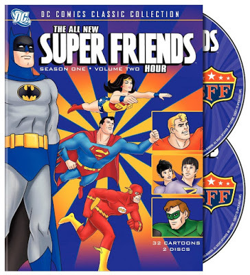 Whether or not you know the term, perhaps you can solve two mysteries presented by the packaging of the DVDs of All-New Super Friends Hour (season 1, volume 2).