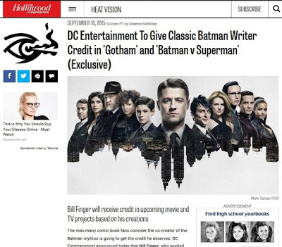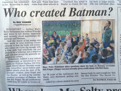 Toward the end of my talk for older kids, I say that Bill Finger’s son Fred was gay. My presentation is an exercise in economy—every word is there to drive the drama of the story—and this detail is no different. In an area as conservative as rural Tennessee, however, the risk of this causing concern is considerable.