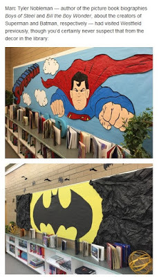 Of course I want kids to be exposed to my books. But I’ve found it to be a more effective use of class/library time to do that after I present. Beforehand, it is tough to draw in the kids who are not interested in superheroes...especially because many educators fall into that category, too!