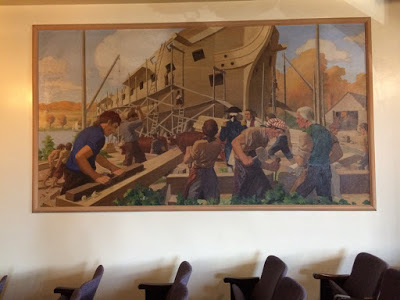 The auditorium in which I spoke featured two unretouched paintings dating back to the Great Depression, done under the Works Progress Administration.