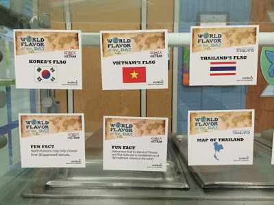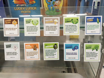 In its cafeteria, Gildersleeve posted fun facts about nutrition and foods from around the world. More schools should do this! A huge, daily opportunity for a teachable moment!