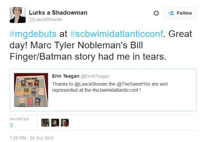 On 10/24/15, I had the privilege of speaking and mentoring fellow writers at the SCBWI Mid-Atlantic 2015 conference in Virginia. I spoke once to the general assembly and met with ten aspiring writers for 15 minutes each to discuss their picture book manuscripts.