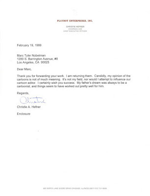 Not all Playboy cartoons have adult themes.I tried unsuccessfully to sell to the magazinefor a while, then sent a note with samples to Playboy CEO Christie Hefner because sheand I both went to Brandeis University(separated by 20 years). Again, the lastline is what made this a keeper.