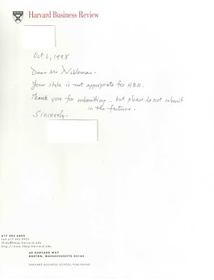 Here are four of my favorite responses to submissions—two rejections, one acceptance, and one something else. This was back when things were done on paper, via postal mail.