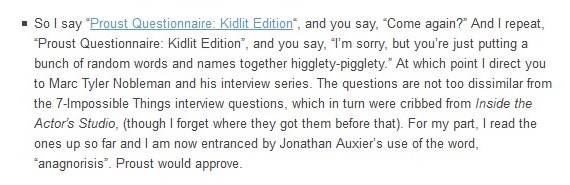 Kind words about the Proust Questionnaire: Kidlit Edition