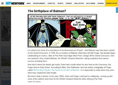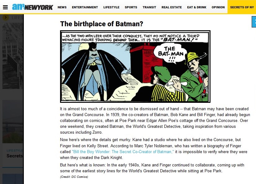 Cristian Salazar at amNewYork contacted me with questions about the connection between the Grand Concourse and the creation of Batman. This led to a nice mention of Bill the Boy Wonder: The Secret Co-Creator of Batman in a 7/7/15 article about the storied history of this major Bronx thoroughfare.