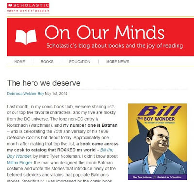 In 2013, Scholastic produced a Book Club (paperback) edition of Bill the Boy Wonder: The Secret Co-Creator of Batman, which I’ve previously mentioned only in passing (in 11/13). I guess this mention is not much more than in passing, either. But at least now I give a link.