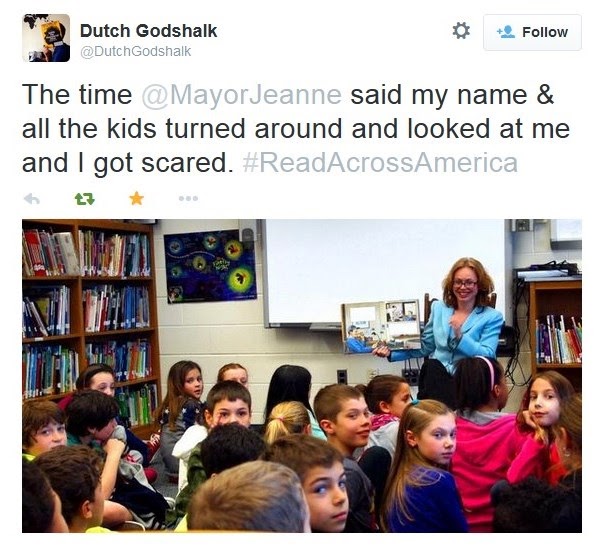 I was thrilled to learn that Jeanne Sorg, mayor of Ambler, PA, read Bill the Boy Wonder: The Secret Co-Creator of Batman to children on Read Across America Day (3/2).