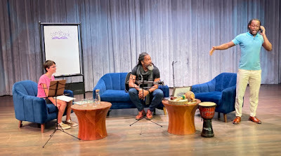 The professional musician is a perpetual mensch—Randy Preston, who often works with Kwame (and who has also worked with Vaughn). Randy is the full package—talented, warm, flexible, great with children.