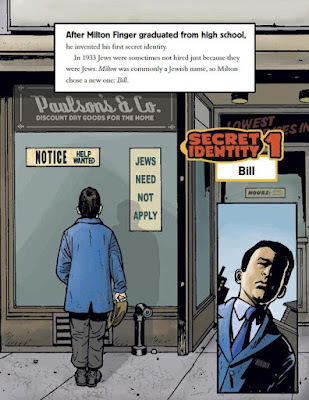 On the first page of Bill the Boy Wonder, Milton Finger looks at a sign in a 1930s New York City store window.