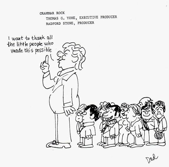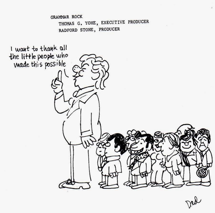 I’m sure you know the key—George Newall, Rad Stone, Bobby Dorough and myself. Tom Yohe and Jack Sidebotham are sadly both gone, but Tom’s son (Tom Jr.) designed some of the most recent ones, and draws in a style very similar to his dad’s. Interestingly, when he was a little boy, Tom Jr. did one of the kid’s voices on my song “Interjections!” and his young son, Tommy III, sang on one of those recent ones I mentioned. So there are three generations of Tom Yohes associated with the show.