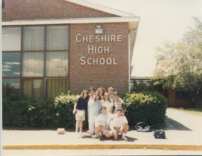 Cheshire has only one public high school. For me, highlights of attending it included designing both the logo of our senior play, The Boyfriend, and the cover of our yearbook. (I also sang and danced in the play, but that was emphatically not a highlight…for anyone listening/watching.)