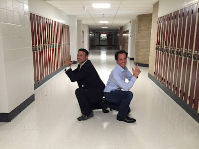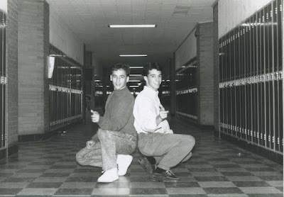 A few summers ago, two of those friends and I were back in our hometown. On a lark, we stopped by our high school even though I said the doors would be locked. I was wrong. We entered. We reminisced. We recreated (by memory) one of my favorite high school photos. We left without seeing another soul though I, for one, felt many souls.