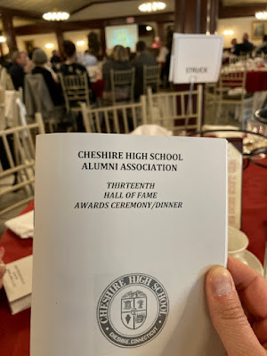 Also delayed due to COVID: the 13th induction ceremony for the Cheshire High School Hall of Fame. I did not know that CHS had a hall of fame before I received an email in December 2019 to notify me that I had been selected as an inductee. Like everything else originally scheduled for spring 2020, it was postponed (eventually more than once), finally happening on 4/24/22 at the venue where we had our senior prom.