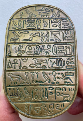 These scarabs even have a Wikipedia entry hiding in plain sight, where you can read the full translation of the hieroglyphics.
