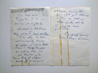 The author/illustrator (whose day job was elementary school teacher) saved not only the original art but also notes for the cover letter…and a rejection letter she received in 1968.