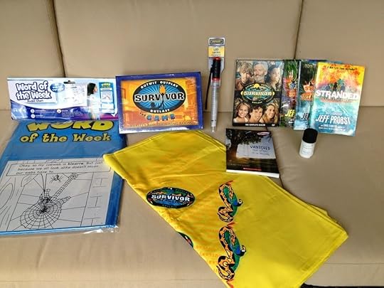 Rewards included Survivor bandanas, a Survivor board game, Survivor-inspired adventure novels for kids thanks to my generous author friend Chris Tebbetts, a book I wrote called Vanished, an LED light stick (three colors!), shampoos/lotions (thanks Holiday Inn or Homewood Suites), and for the Sole Survivor, the DVD of the complete season of Survivor Palau.