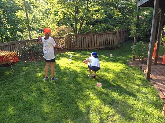 Challenge #7: dexterity. Toss snowballs (saved in freezer from winter) without dropping or crushing.